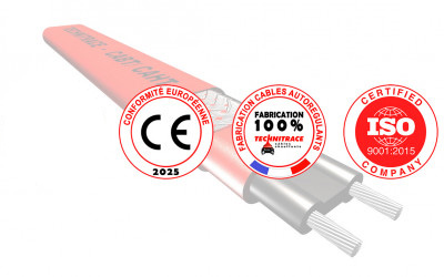 Les câbles chauffants fabriqués par la société TECHNITRACE sont conformes aux exigences des normes Européennes en vigueur et de fabrication Française. Ils bénéficient d’un contrôle de la qualité en continu (traçabilité et numéros de lots pour chaque étape de production) suivant le plan d’assurance qualité interne de l’entreprise et certifié ISO9001 : 2015. Le plus grand soin est apporté aux différents suivis et contrôles réalisés tout au long de la chaîne de production de la réception des matières premières à la livraison chez notre client.