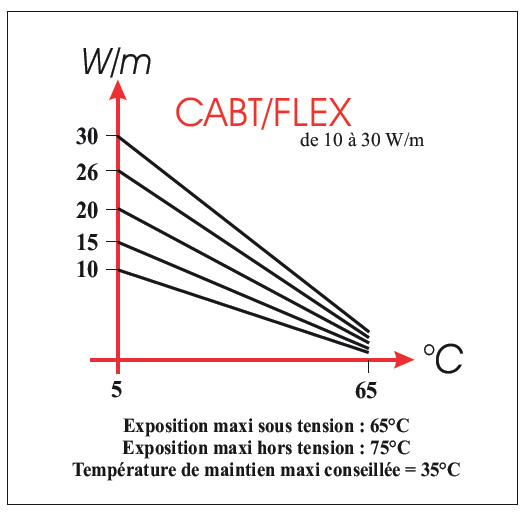 • le câble chauffant CABT-FLEX supporte branché 65°C / débranché 65°C