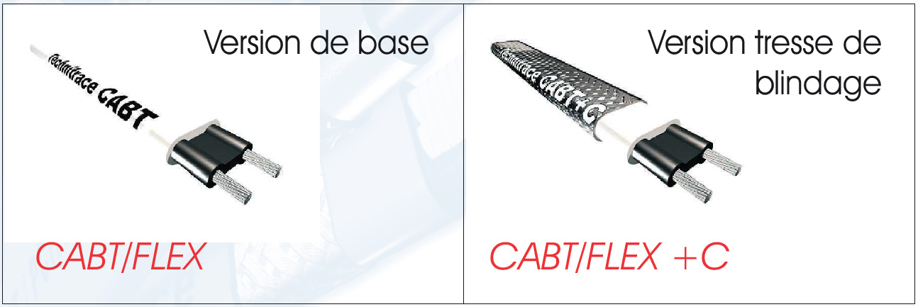 Les câbles chauffants autorégulants CABT/FLEX sont constitués d’un élément chauffant plastique semi conducteur qui adapte en tout point sa puissance calorifique (W/m) en fonction de la température locale.